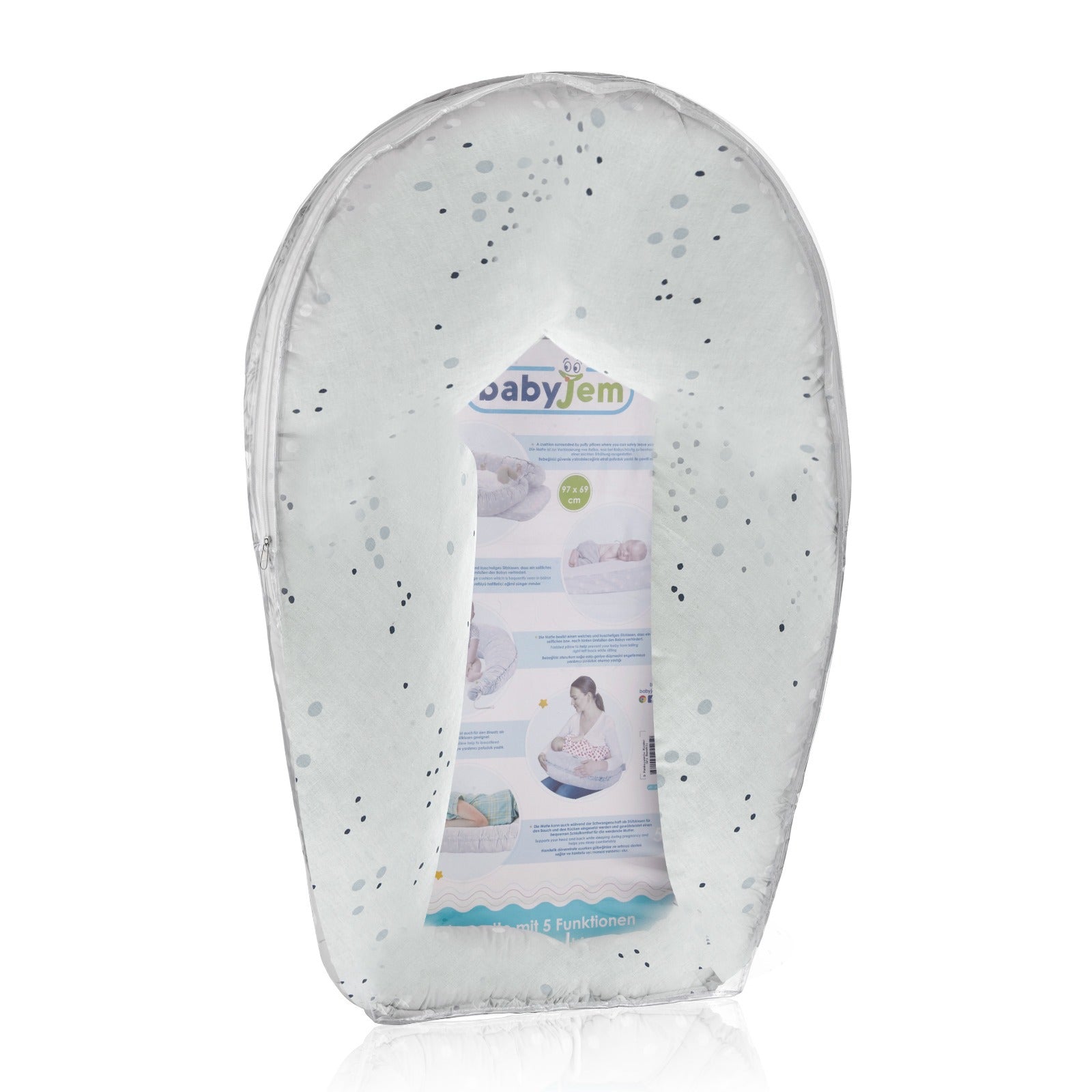 5-funksional: minishtrat për ulje, për uljen e refluksit, mbështetje gjatë uljes, mbështetje gjatë gjumit të shtatzënisë, dhe mbështetje për ushqyerje me gji |