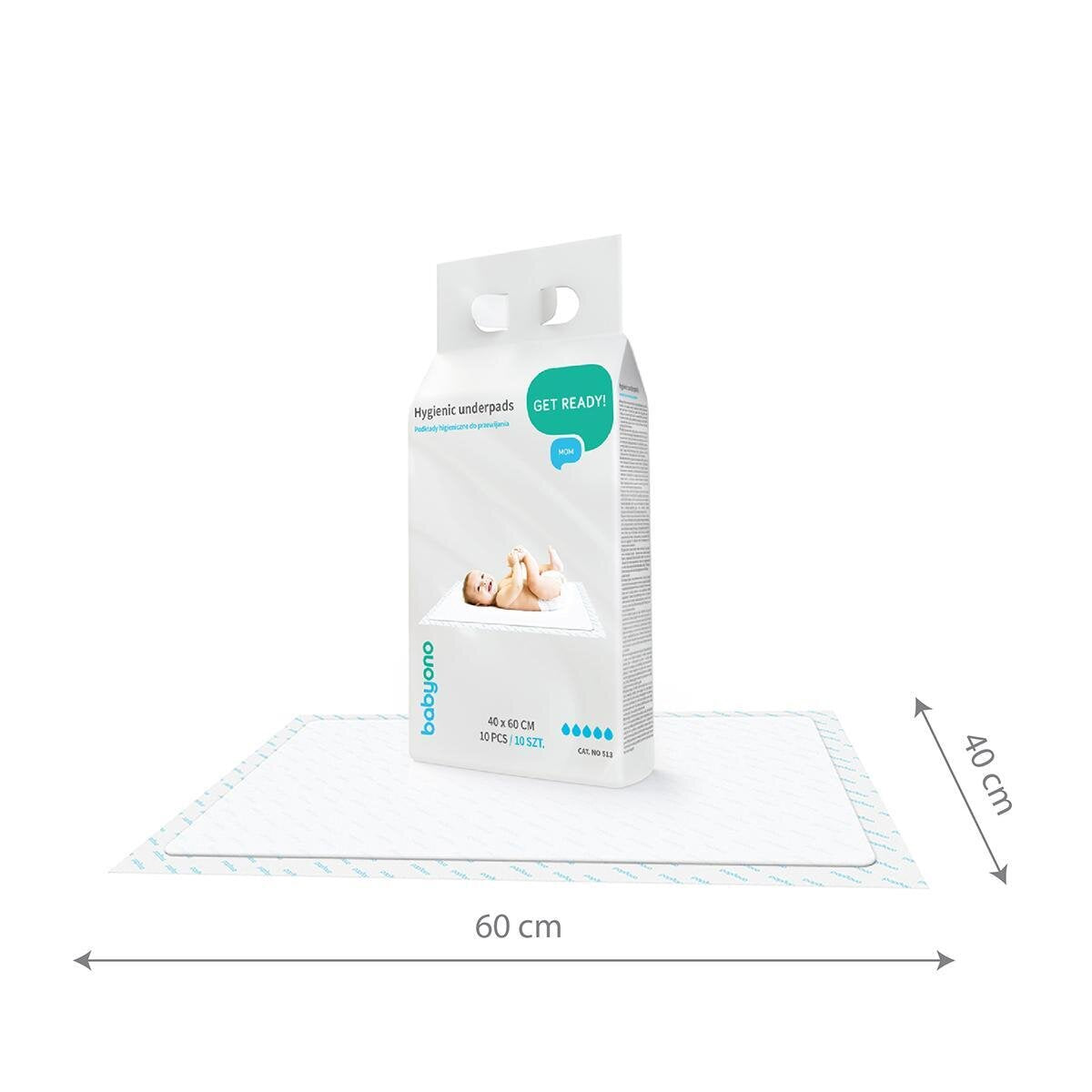 BabyOno Shtresat Higjenike janë të përshtatshme për nderrimin e foshnjave dhe për gratë gjatë periudhës postpartum. Materiali superabsorbent ofron ndjesi higjienike dhe rehatie. Shtresa e jashtme mbron kundër ndotjes, ndërsa rripat vetë-ngjitës parandalojnë rrëshqitjen. Brendësia superabsorbente thith lëngjet shpejt dhe neutralizon aromat e pakëndshme, duke ruajtur lëkurën e foshnjës të thatë dhe të shëndetshme.