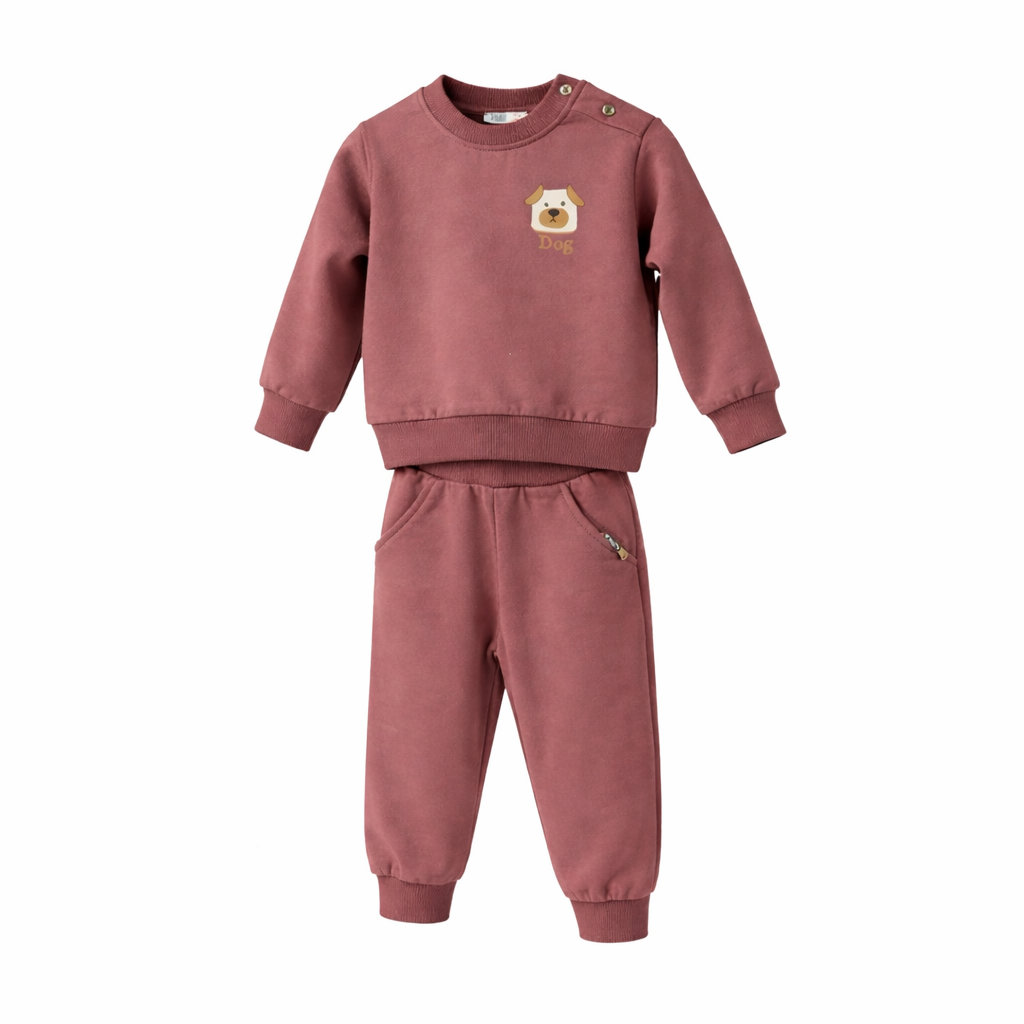 Komplet dy-pjesësh i përbërë nga bluzë dhe pantallona, i dizajnuar për rehati dhe përdorim të përditshëm. I punuar nga 95% pambuk dhe 5% elastik (lycra), materiali është i butë, dhe elastik, shumë i përshtatshëm për lëkurën e ndjeshme të bebes.