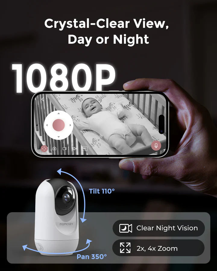 Momcozy BM04 është një monitor inteligjent për bebe me ekran 5 inç dhe 2 kamera, i krijuar për të ofruar kontroll të plotë dhe qetësi për prindërit. Me funksionim dual-mode (monitor direkt + lidhje përmes aplikacionit), ky sistem ju lejon të mbikëqyrni fëmijën në çdo kohë, me video të qartë, audio dy-drejtimëshe dhe funksione të avancuara sigurie.