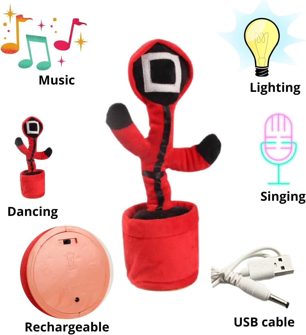 Kjo lodër interaktive muzikore është krijuar për të sjellë argëtim dhe të qeshura për fëmijët, duke kombinuar muzikën, lëvizjen dhe funksionin e regjistrimit të zërit. Me dizajn të butë prej pelushi dhe formë unike, ajo lëviz ritmikisht në muzikë dhe reagon ndaj zërit, duke e bërë lojën më dinamike dhe tërheqëse.