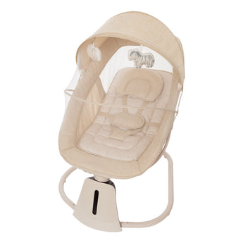 Me lëvizje anësore automatike dhe 5 nivele shpejtësie, luhatësja krijon një ritëm të butë dhe natyral që i ngjan përkundjes në krahët e prindit. Shpinorja është plotësisht e rregullueshme, duke e bërë ideale për gjumë, lojë, ushqyerje apo relaksim.