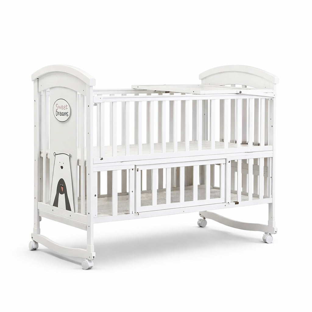 Struktura mund të përdoret si luhatëse për qetësimin e foshnjës ose me rrota për lëvizje të lehtë nëpër dhomë. Pjesa e poshtme e shtratit ofron hapësirë shtesë për ruajtjen e gjërave të bebit, si rroba, batanije apo aksesorë të tjerë.