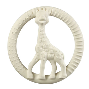 Оваа кружна забичка, дел од серијата So'Pure од Софи ла Жирафа, е направена од природна гума за да ги смири непцата при никнување на забите кај бебињата. Лесна за држење, оваа забичка е безбедна и практична, помагајќи во ублажување на болката при никнување на забите.