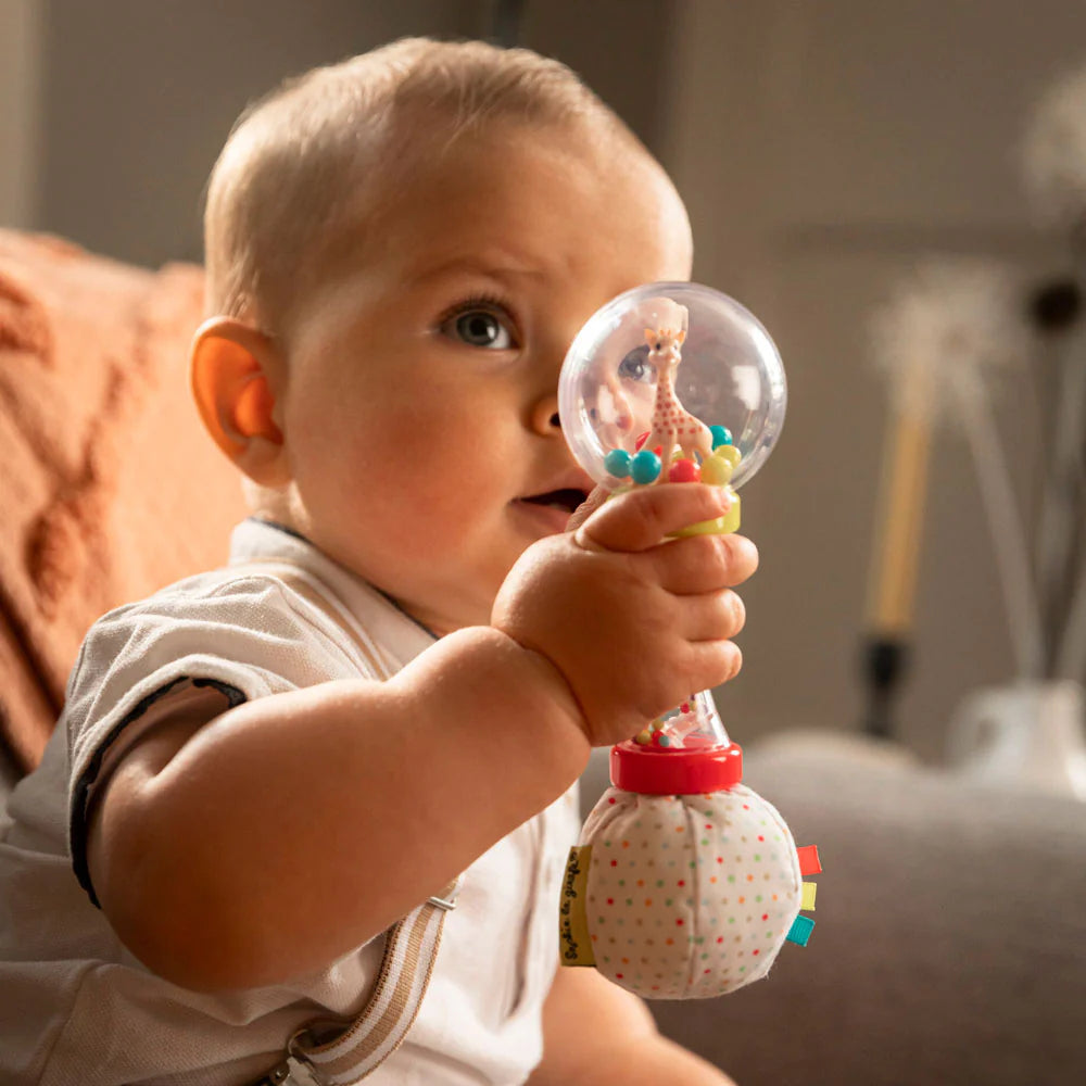 Оваа лесна ѕвечкалка е дизајнирана за малите рачиња на бебето. Има светли монистра кои испуштаат сладок звук, меко дно кое испушта пискави звуци и текстурирани етикети за сензорна стимулација. Рачката има ротирачки монистра за да го привлече вниманието на бебето.