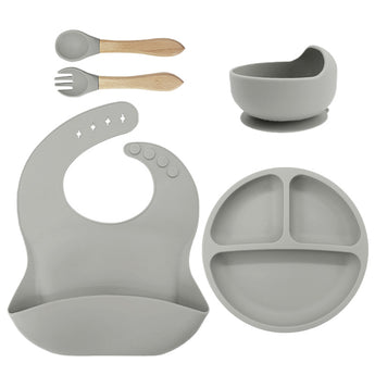 Овој силиконски сет за хранење е идеално решение за хранење бебиња и мали деца. Дизајниран да обезбеди удобност, чистота и безбедност за време на оброците, сетот вклучува 5 основни парчиња кои им помагаат на родителите и го прават хранењето полесно и позабавно за децата.