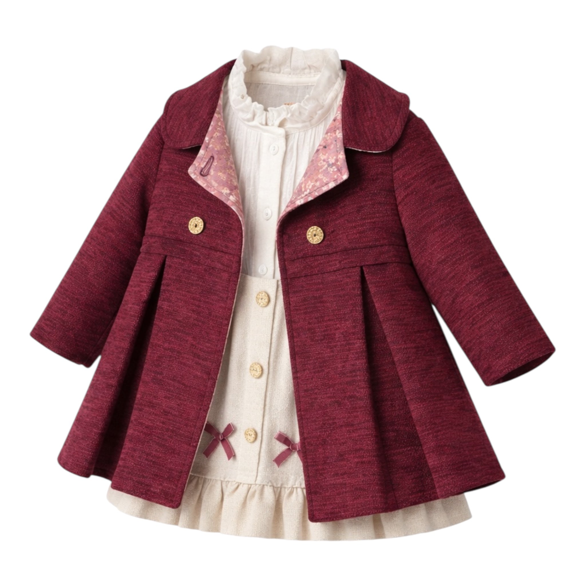 Set elegant për vajza me 3 pjesë, i përbërë nga xhaketë, këmishë dhe fund. I punuar nga material pambuku cilësor, i butë dhe i rehatshëm për lëkurën e fëmijës. Xhaketa ka prerje të bukur dhe mbyllje me pulla dekorative, këmisha e brendshme shton finesë dhe rehati, ndërsa fundi kompleton pamjen me stil të kuruar. Dizajni ofron liri lëvizjeje dhe është ideal si për përdorim të përditshëm ashtu edhe për raste të veçanta.
