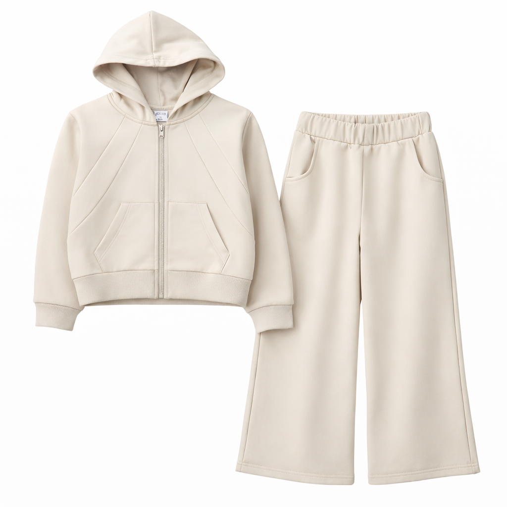 Seti vjen në ngjyra të buta dhe moderne, të përshtatshme si për vajza ashtu edhe për djem, dhe kombinohet lehtë me veshje të tjera.