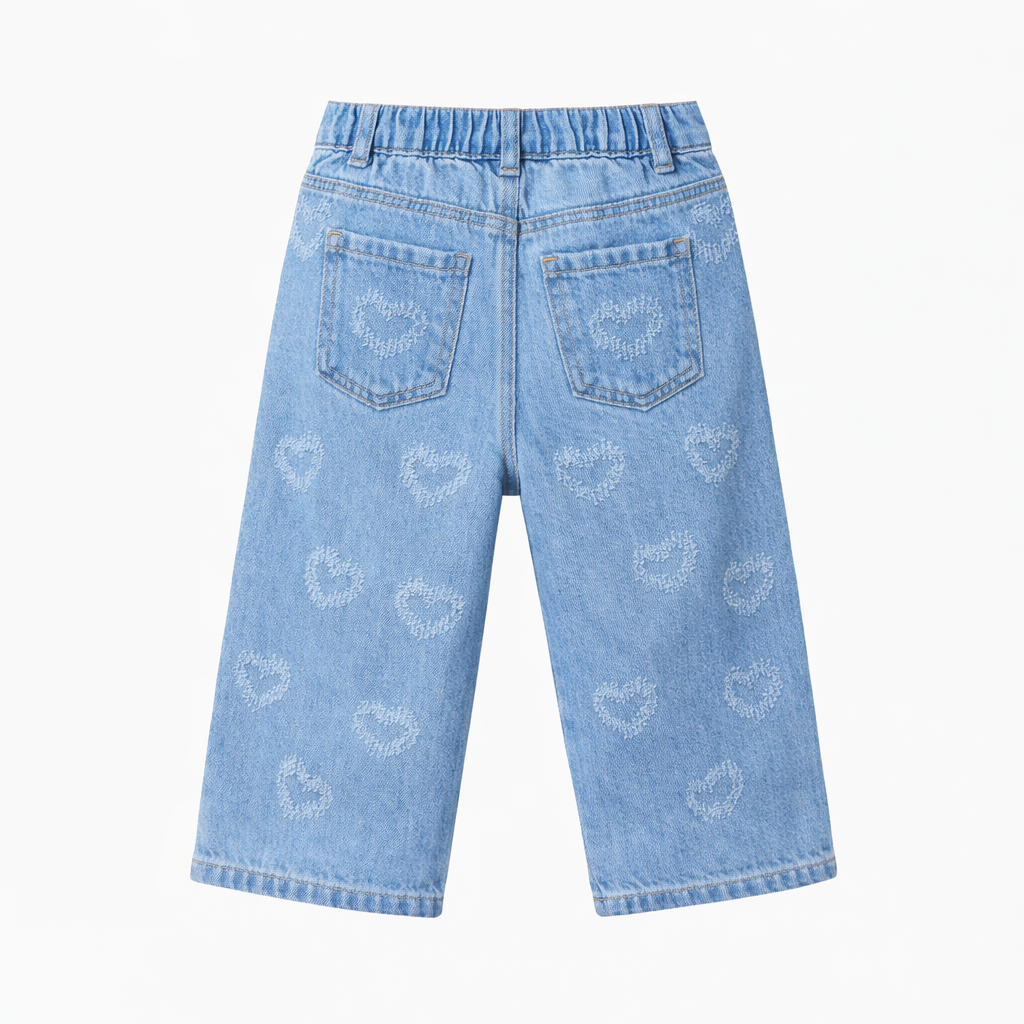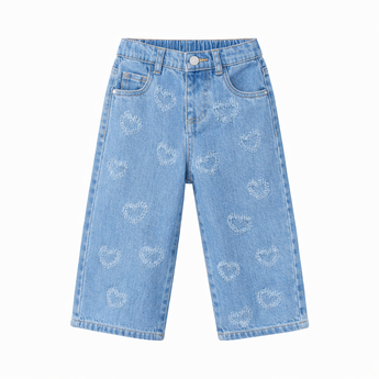 Këto xhinse për fëmijë janë zgjedhje ideale për përdorim të përditshëm, duke kombinuar rehati dhe stil modern. Të punuara nga material cilësor xhins, ofrojnë qëndrueshmëri dhe ndjesi të këndshme gjatë veshjes. Dizajni me motive delikate në formë zemrash i jep veshjes një pamje lozonjare dhe të veçantë, perfekte për kombinime të ndryshme.
