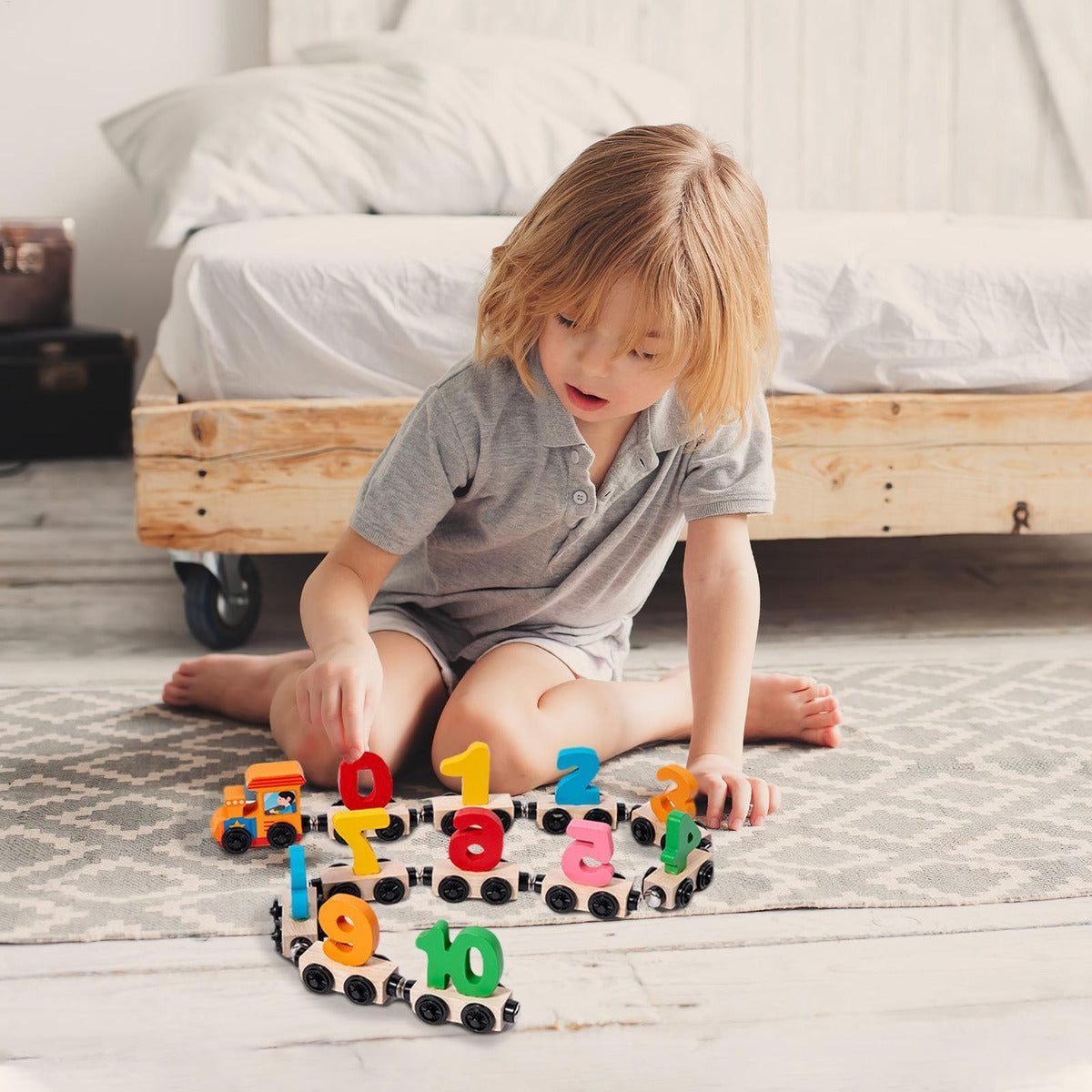 I ndërtuar nga dru i qëndrueshëm dhe i lëmuar, treni ofron qëndrueshmëri afatgjatë dhe përdorim të sigurt për fëmijët e vegjël. Magnetët e fortë sigurojnë që vagonët të mos ndahen lehtë gjatë lojës, duke garantuar orë të tëra argëtimi dhe mësimi. Një zgjedhje perfekte për zhvillimin e aftësive motorike, njohjen e ngjyrave dhe numrave, si dhe për të inkurajuar imagjinatën dhe bashkëveprimin prind–fëmijë.