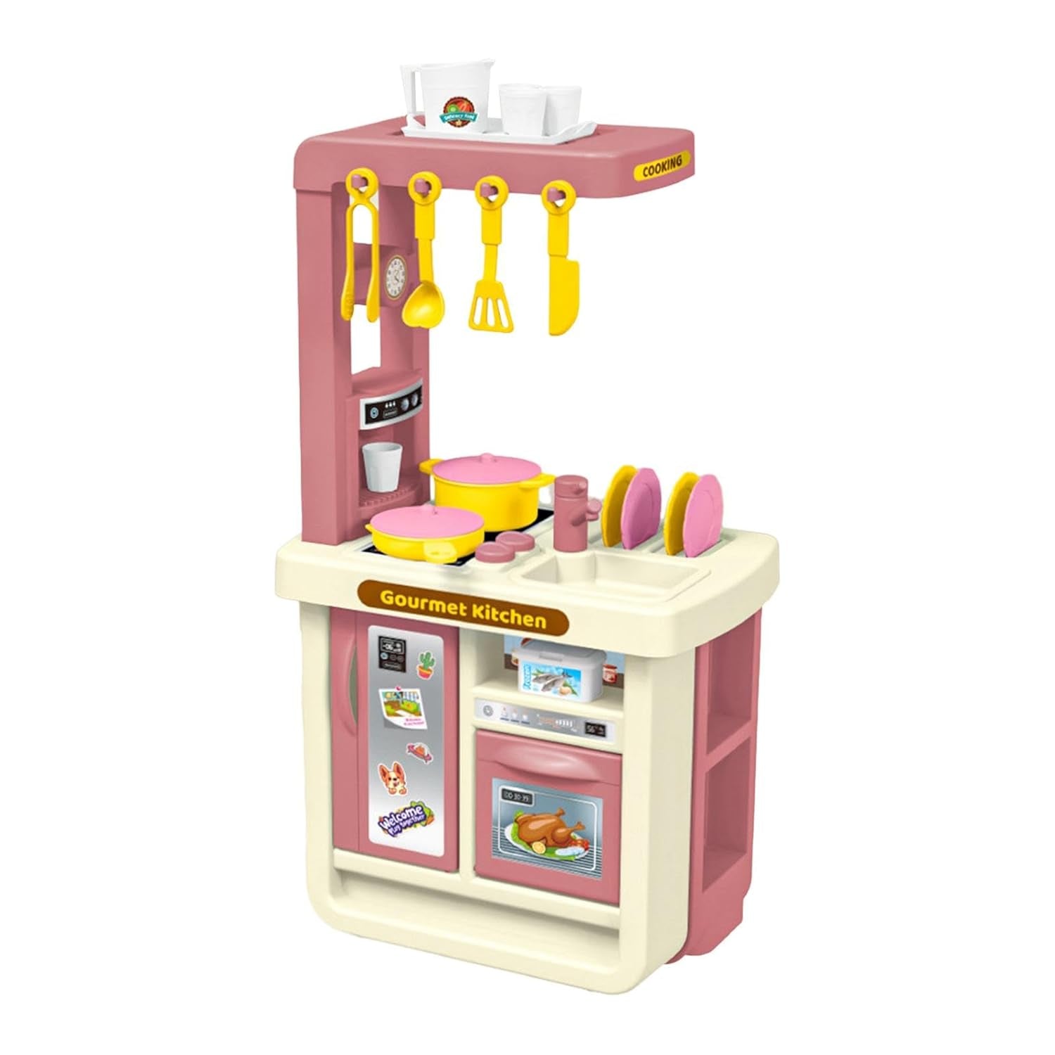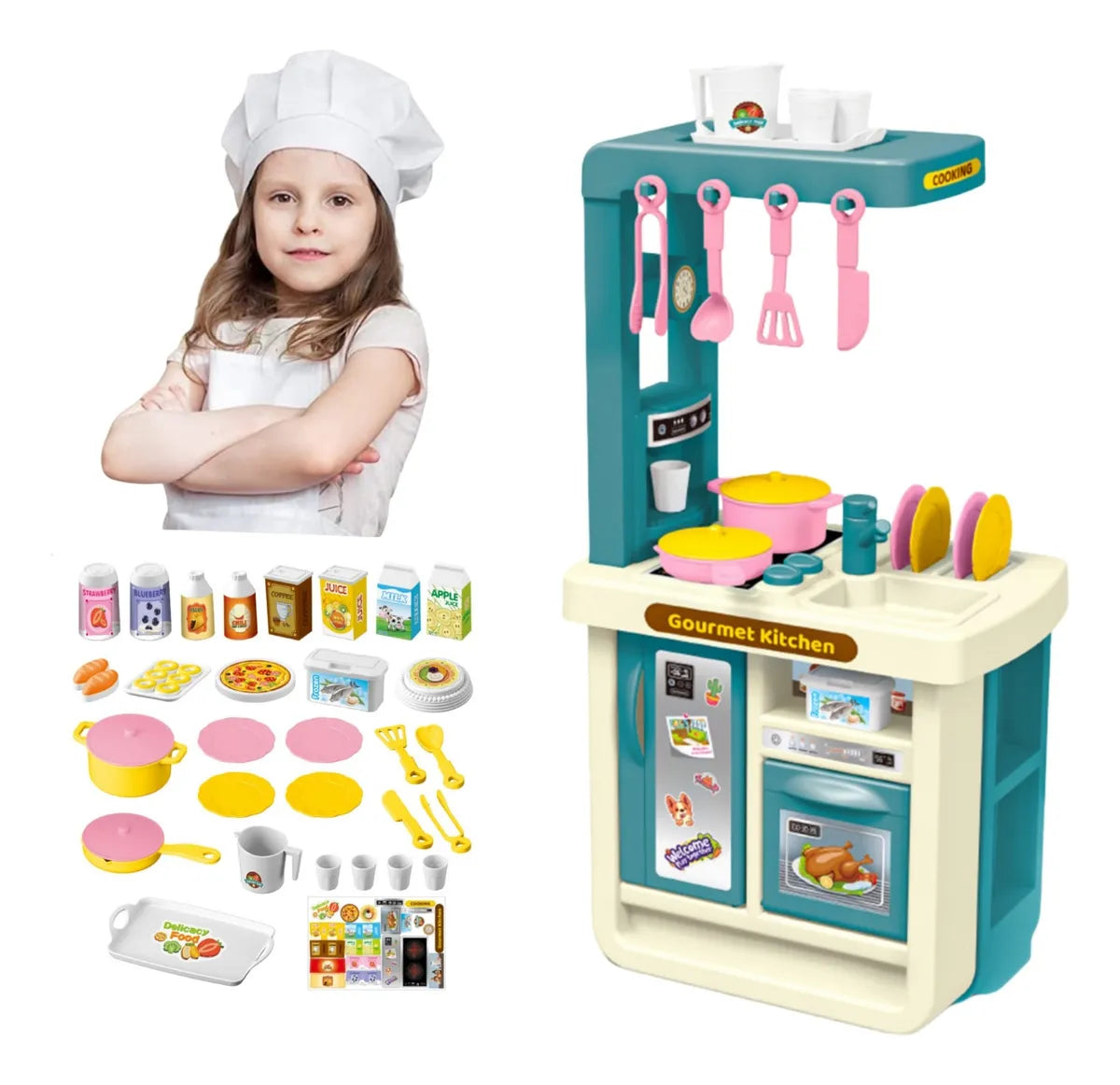 Kjo kuzhinë lodër për fëmijë me dizajn realist u mundëson të vegjëlve të shijojnë lojën e roleve përmes gatimit të simuluar. Me furrë lodër, tenxhere, tiganë dhe aksesorë të shumtë, fëmijët mund të “pjekin” bukë dhe pica pa ndërprerje, duke krijuar skenarë argëtues dhe kreativë.