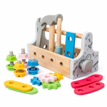Дрвената играчка со алатки е едукативен и забавен сет за деца кои сакаат рачни изработки и креативност. Изработена од квалитетно дрво и со мазни завршни обработки, оваа играчка нуди максимална безбедност за време на играта. Сетот содржи алатки како што се чекан, шрафцигер, мерна лента и многу други елементи кои помагаат во развојот на моторните и креативните вештини кај децата.