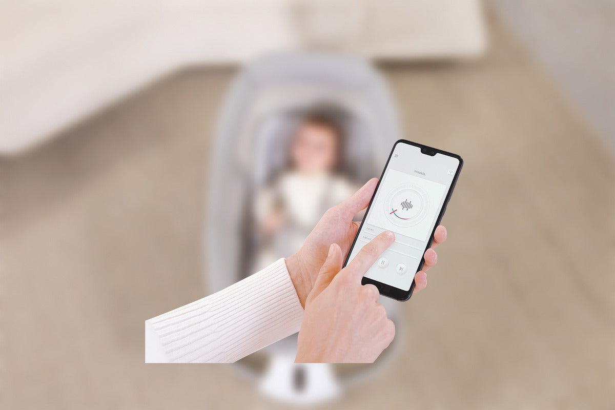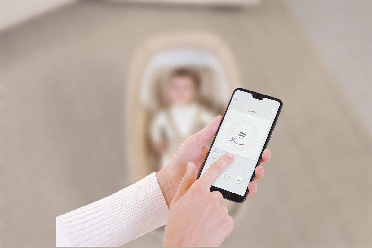 Përmes Bluetooth dhe aplikacionit në telefon, mund të kontrolloni çdo funksion dhe të vendosni muzikën apo tingujt që bebja juaj preferon. 12 meloditë e integruara dhe timeri i rregullueshëm (15, 30 ose 45 minuta) ofrojnë një ambient të qetë dhe të sigurt.