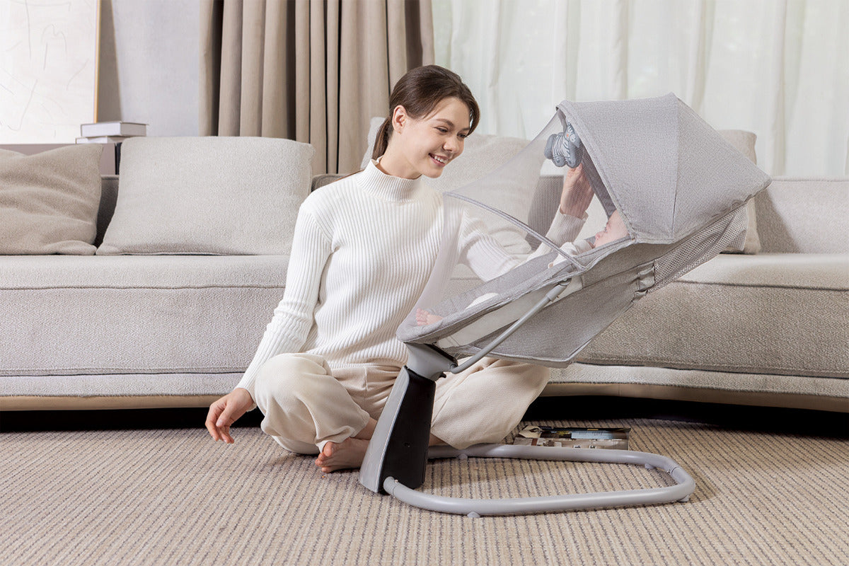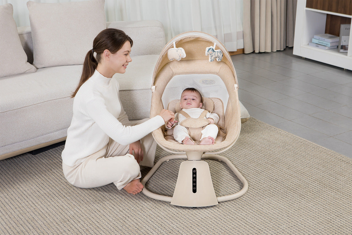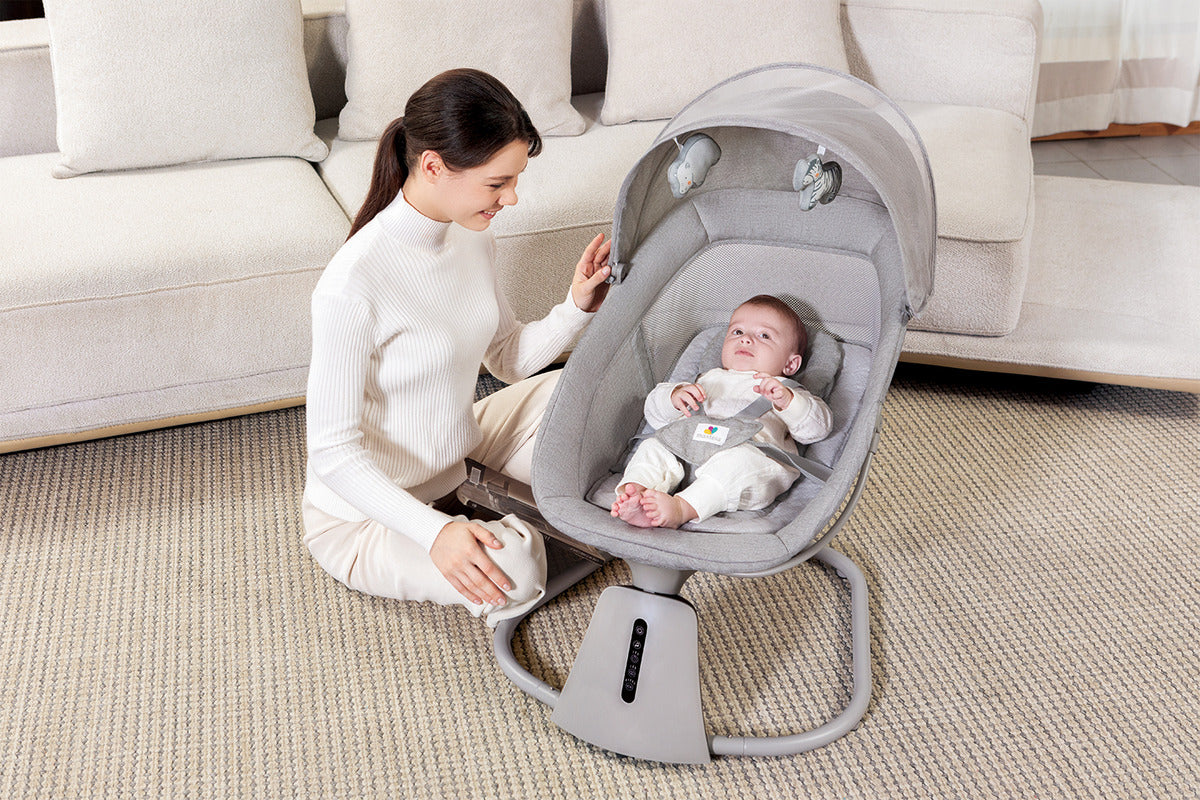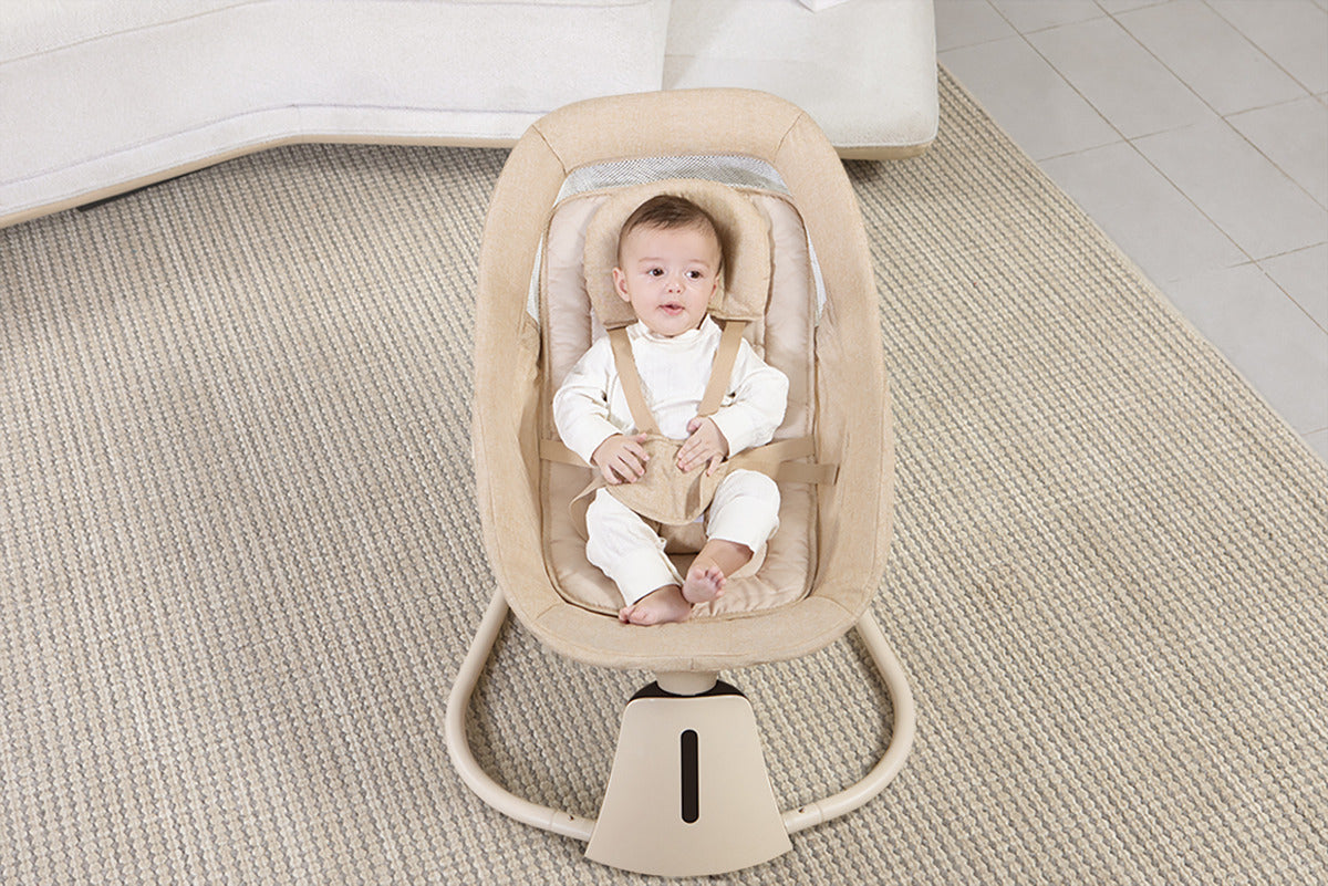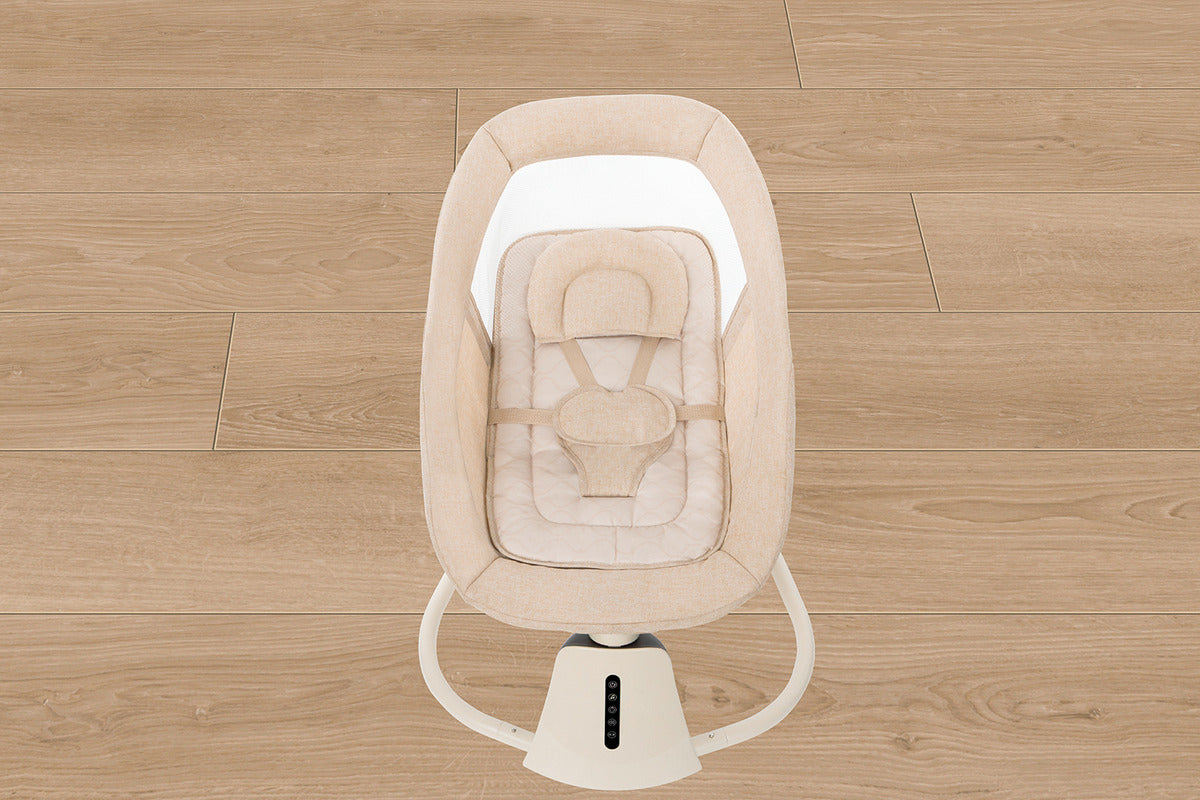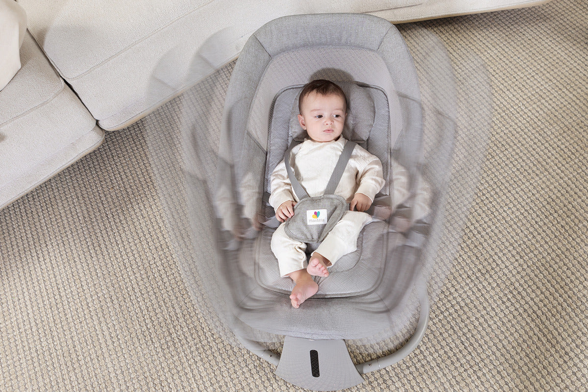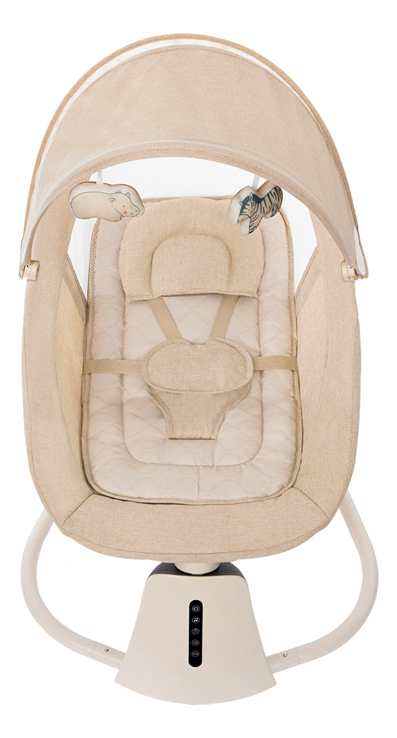 Me lëvizje anësore automatike dhe 5 nivele shpejtësie, luhatësja krijon një ritëm të butë dhe natyral që i ngjan përkundjes në krahët e prindit. Shpinorja është plotësisht e rregullueshme, duke e bërë ideale për gjumë, lojë, ushqyerje apo relaksim.