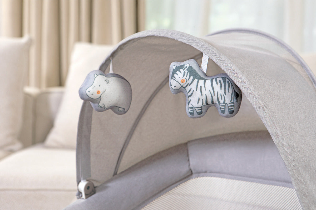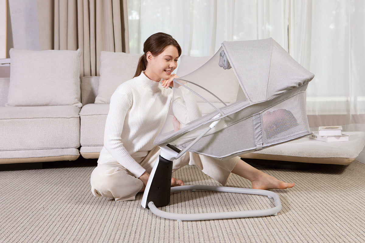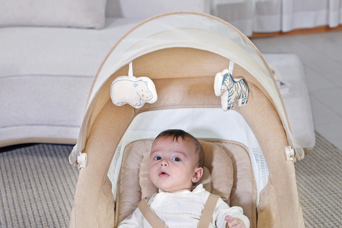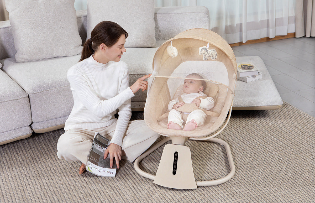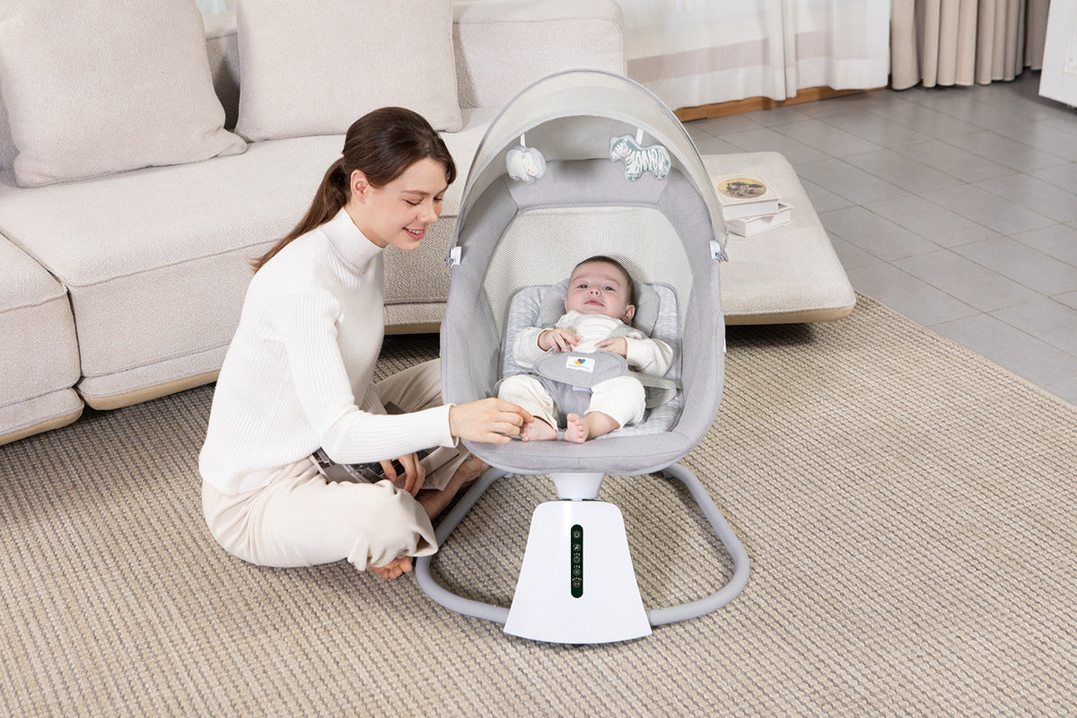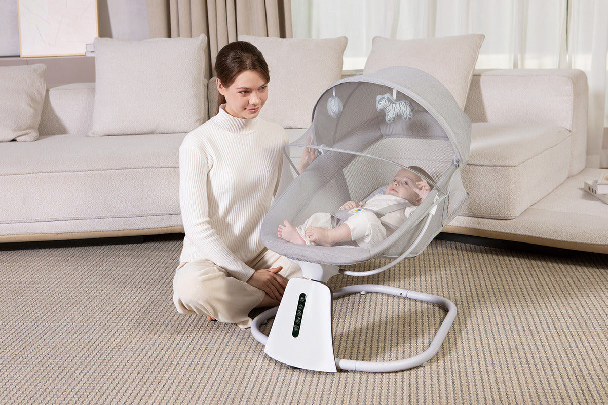 Me lëvizje anësore automatike dhe 5 nivele shpejtësie, luhatësja krijon një ritëm të butë dhe natyral që i ngjan përkundjes në krahët e prindit. Shpinorja është plotësisht e rregullueshme, duke e bërë ideale për gjumë, lojë, ushqyerje apo relaksim.