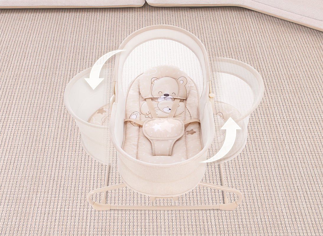Zgjidhja ideale për prindërit modern që kërkojnë komoditet, siguri dhe funksionalitet në një produkt të vetëm. 4 në 1 Swing & Bassinet kombinon djepin, lëkundësen automatike dhe ulësen statike, duke ofruar një hapësirë të rehatshme për gjumë, qetësim dhe lojë që nga lindja.