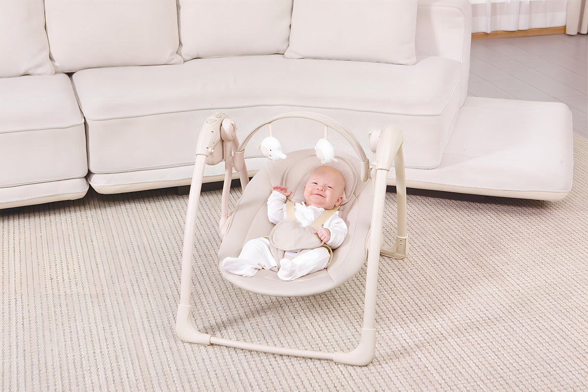 Për siguri maksimale, luhatësja është e pajisur me rrip sigurie të rregullueshëm dhe këmbë kundër rrëshqitjes që garantojnë stabilitet në çdo sipërfaqe. Mbulesa e butë është e heqshme dhe mund të lahet në lavatriçe, duke e bërë shumë praktike për përdorim të përditshëm.