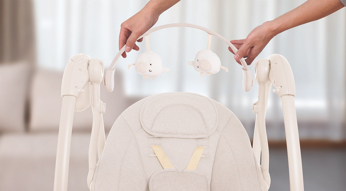 Luhatësja automatike Mastela është krijuar për t’i ofruar bebes tuaj një ambient të qetë, të sigurt dhe relaksues. Falë sistemit të lëkundjes automatike me 5 nivele shpejtësie, ajo ndihmon në qetësimin e foshnjës dhe e vendos në gjumë më lehtë, Timeri inteligjent lejon vendosjen e kohës së lëkundjes në 15, 30 ose 45 minuta, pas së cilës pajisja fiket automatikisht. Mobile me 2 lodra plush stimulon zhvillimin vizual dhe e mban beben të argëtuar gjatë kohës që pushon.