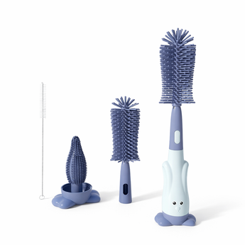Комплетот четки за чистење шишиња е задолжителен за секој родител кој сака да ги одржува шишињата на своето бебе чисти и хигиенски. Овој сет вклучува широк спектар на различни четки, секоја дизајнирана да допре до секој агол и пукнатина на шишето, обезбедувајќи темелно и длабинско чистење.