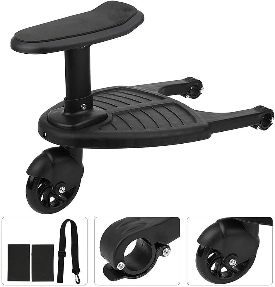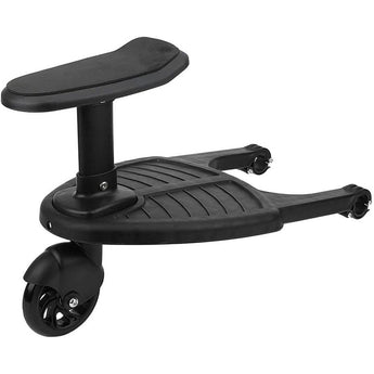 Kjo shtesë praktike për karrocë është zgjidhja ideale për prindërit me dy fëmijë. Ajo montohet në pjesën e pasme të karrocës dhe i mundëson fëmijës më të madh të ulet ose të qëndrojë në këmbë gjatë shëtitjeve, duke e bërë lëvizjen më të lehtë dhe më komode për prindin.