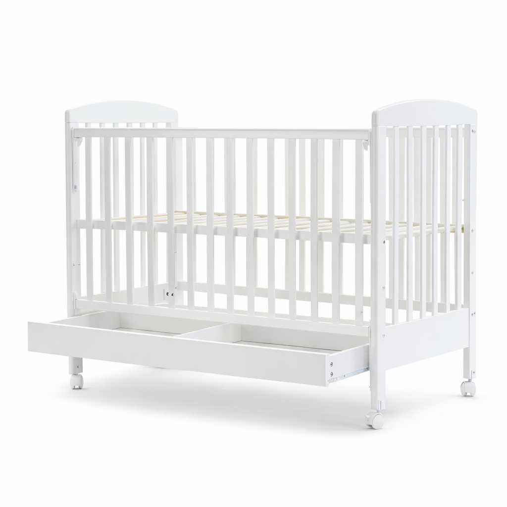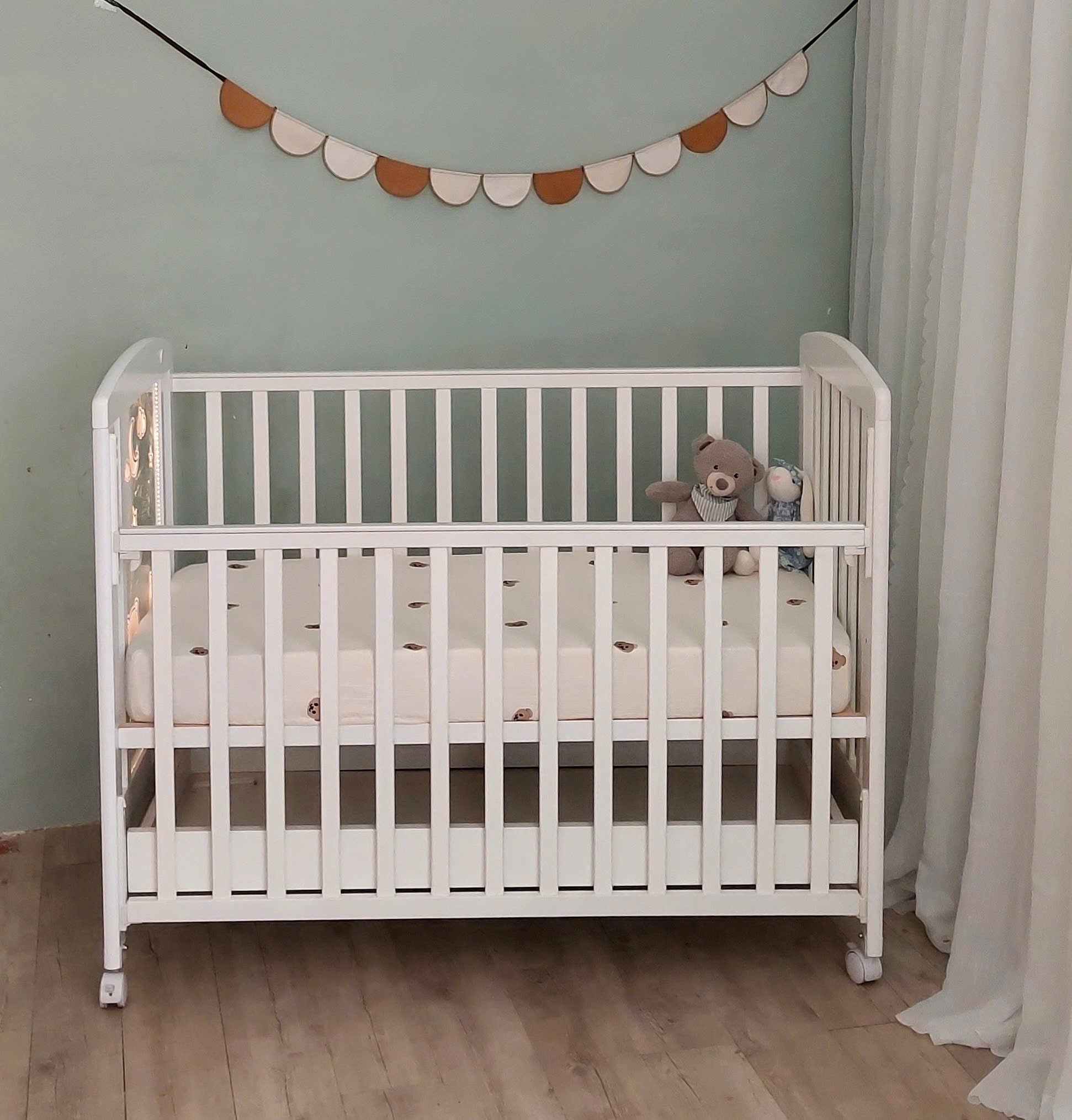 Poshtë shtratit gjendet edhe një dollap praktik, i cili ofron hapësirë për ruajtjen e gjërave të përditshme të bebes.
