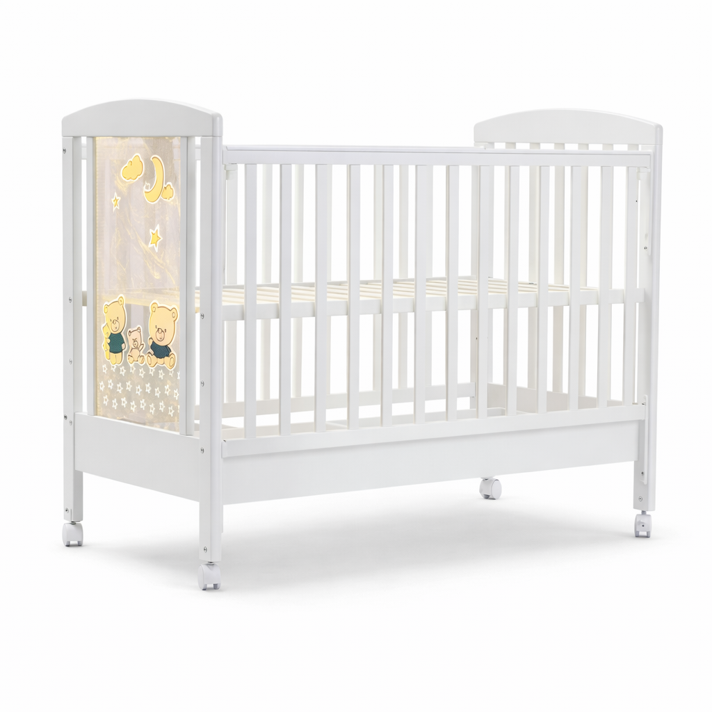 Ky shtrat elegant për bebe është dizajnuar për t’ju ofruar siguri, komoditet dhe prakticitet në çdo përdorim. Paneli dekorativ me ndriçim LED krijon një ambient të ngrohtë dhe të qetë për gjumin e foshnjës, ndërsa funksionalitetet e tij e bëjnë ideal për përdorim afatgjatë.