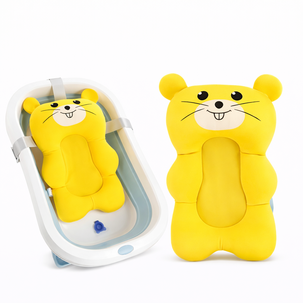 Направен од мек, водоотпорен и брзосушечки материјал, овој слој е исполнет со дишечка структура што спречува насобирање на влага и го одржува бебето мирно и опуштено за време на капењето. Грбот и ергономскиот облик спречуваат лизгање, што го прави капењето побезбедно за бебето и полесно за родителот.
